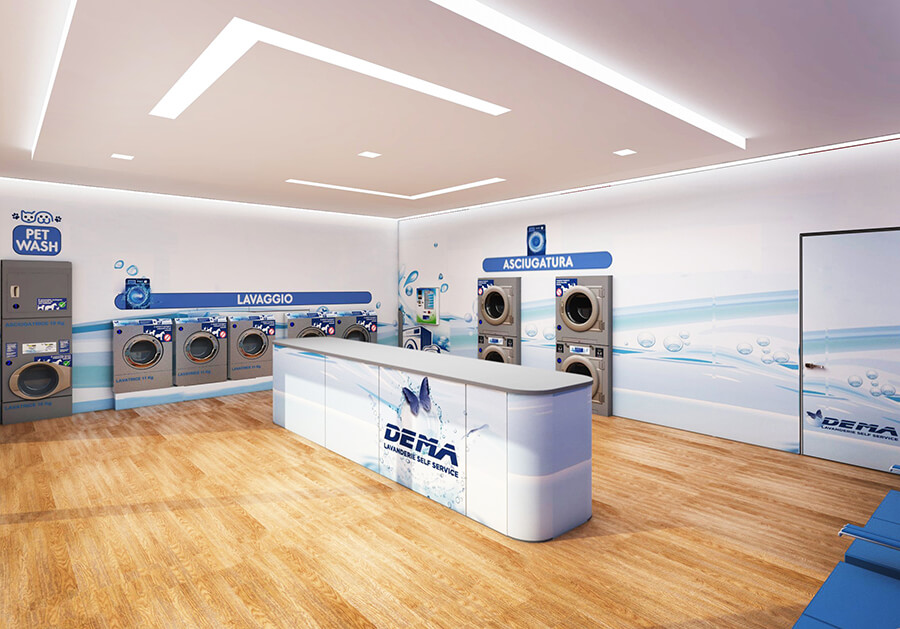 Gallery Gallery Lavanderie Self Service alcuni esempi di installazioni Rendering Punto Vendita Carrefour Pavia Grafica standard Grafica personalizzata Altre installazioni